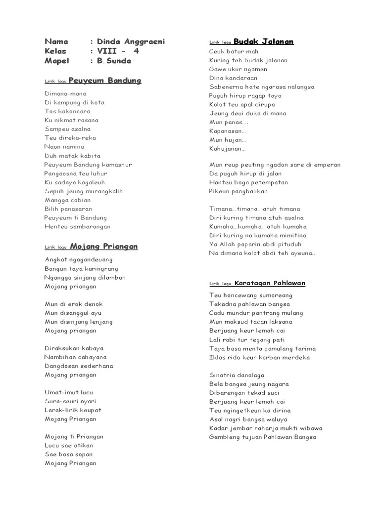 Lirik Lagu Sunda from imgv2-1-f.scribdassets.com More images for lirik lagu budak jalanan » Ada doel sumbang, darso, yayan jatnika, hetty koes endang, rya fitra, detty kurnia, oon dan lain lain. Gigaguenstig.de has been visited by 10k+ users in the past month Jeung deui duka di mana. Kumpulan kord lagu gitar dan. Tausende von menschen haben den sale bereits genutzt! Dec 21, 2019 · lirik lagu budak jalanan. Anda mengetahui judul dan nama penyanyi.